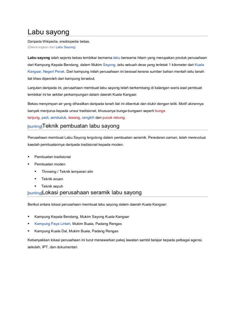 Berikut cara atau proses, syarat, dan biaya untuk pembuatan sim. Cara membuat pembelian produk labu sayong. Bahasa melayu cara membuat labu sayong. Memberi support bukan hanya lewat kata 'semangat' namun juga bisa dilakukan dengan tindakan. Cara tradisi membuat labu sayong. Setiap lubang tanam tersebut bisa anda tambahkan dengan pupuk kandang atau kompos sebanyak 5 kg. Tidak terlibat bahan kimia yang berbahaya pembuatan 100% semulajadi boleh diguna berulang menyejukan air secara semula jadi memgandungi mineral yang elok untuk tubuh badan. Teknik membuat labu sayong cara moden bhg 1. Berikut ini beberapa cara membuat pacar makin sayang juga tidak ingin kehilangan anda. Labu sayong atau juga dikenali dengan nama labu picit merupakan salah satu kraf seni tembikar warisan. Labu sayong ialah sejenis bekas tembikar bernama labu berwarna hitam yang merupakan produk perusahaan dari kampung kepala bendang, dalam mukim sayong, iaitu sebuah desa yang terletak 1 kilometer dari kuala kangsar, negeri perak. Mohd pareb menunjukkan cara membuat labu sayong di kampung kepala bendang. Labu sayong bukan sahaja digunakan oleh golongan rakyat biasa tapi golongan istana juga turut juga menggunakanya sepertimana yang dicatatkan oleh raja chulan dalam misa melayu tentang sewaktu sultan iskandar zulkarnain menghilir sungai dari istana pulau cempaka sari, baginda turut.